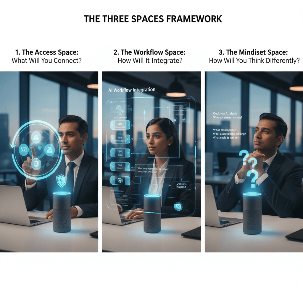 This is where most leaders fail—not in understanding AI’s potential, but in actually changing daily habits.Integration means embedding AI into your actual work rhythm. I start each morning asking my Chief of Staff: “What are the main tasks for today?” Because I ended yesterday by updating my key task list, my CoS has persistent context—it reads from organized files where it maintains continuity on my priorities, commitments, and ongoing projects.This isn’t about automation. It’s about having a thinking partner with institutional memory who helps you maintain strategic focus across days and weeks, not just within isolated moments.The shift: from treating each AI interaction as a standalone transaction to building a persistent workflow partnership. - The Mindset Space: How Will You Think Differently?